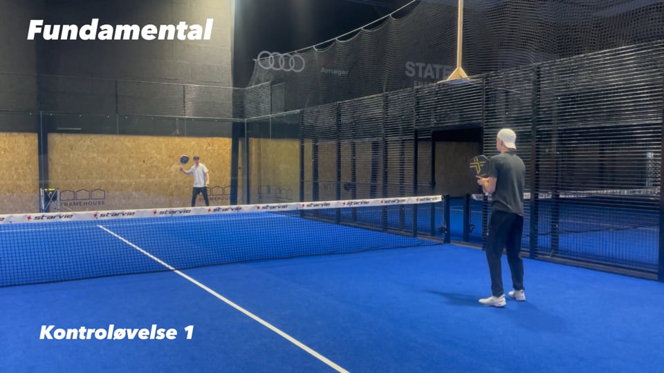 Begge spillere bag servelinjen. Flad, flad, flugtning – lob og løb (bajada, flad, volley) – 4 serier i træk uden fejl.